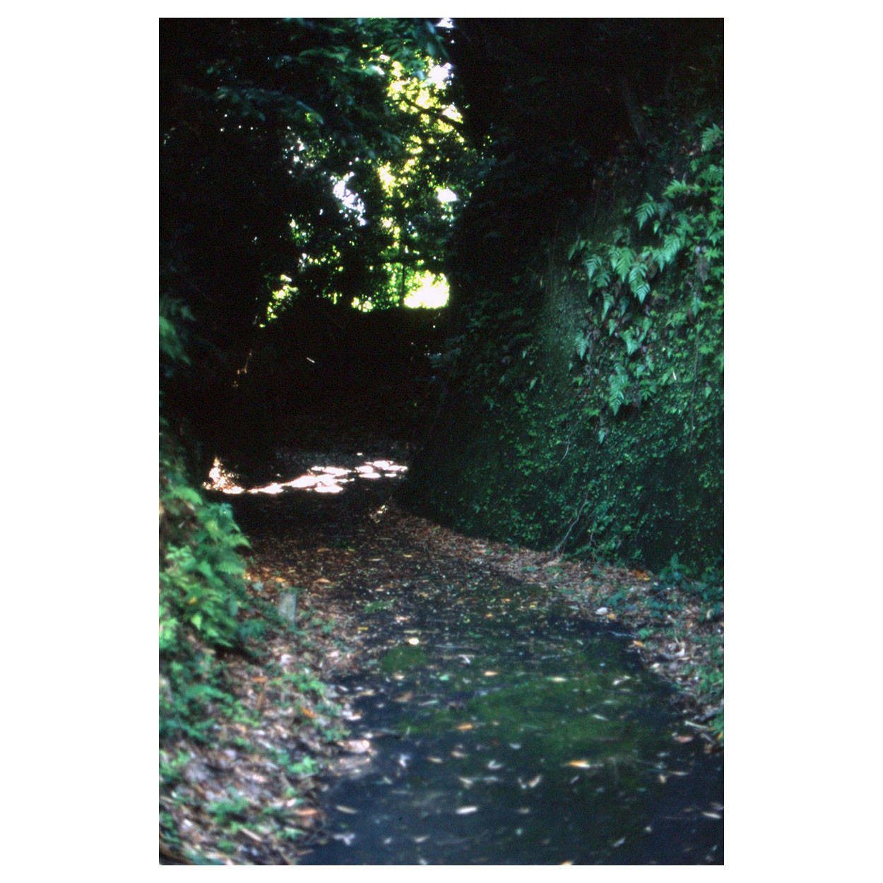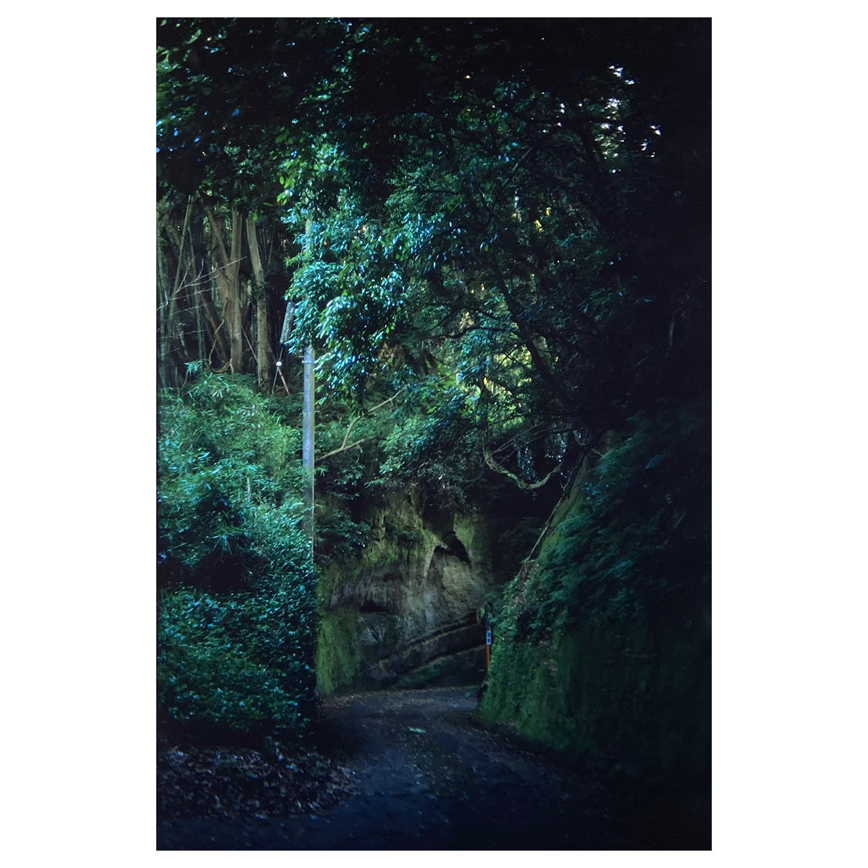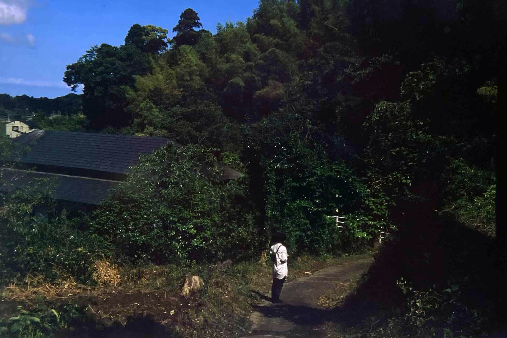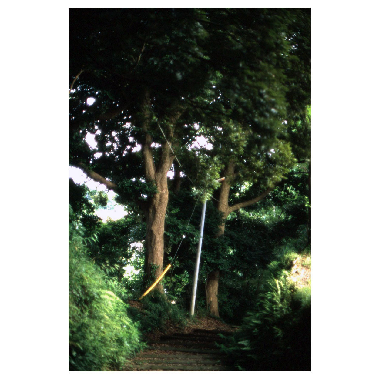 急な階段を下ると外に出られる。鎮守の森とか言うけれど、迷い込む感じ。