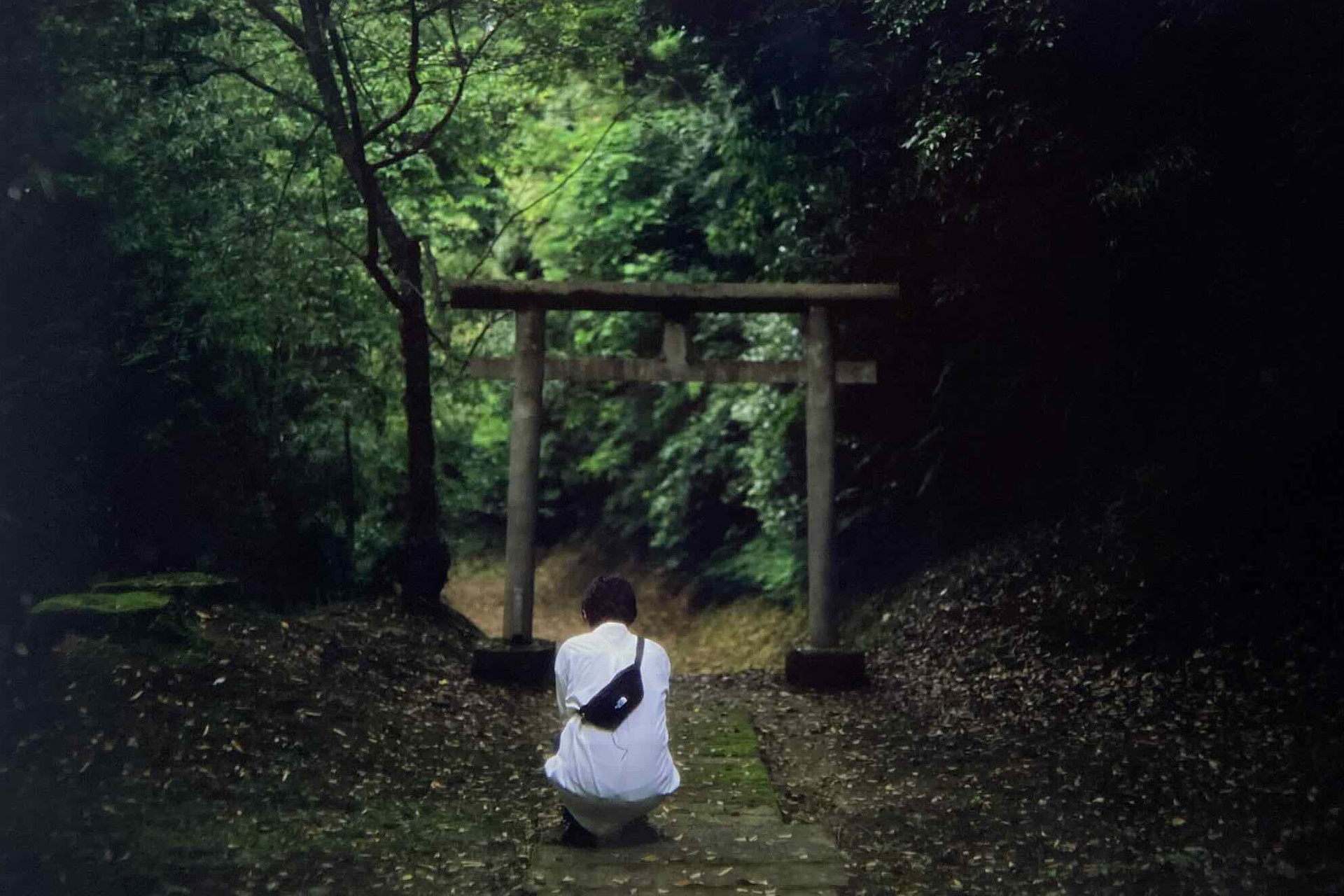 神社でこう言うふうに座り込んでいる人がいたら境内に入りづらいわな。何か見つけたのだろうか。